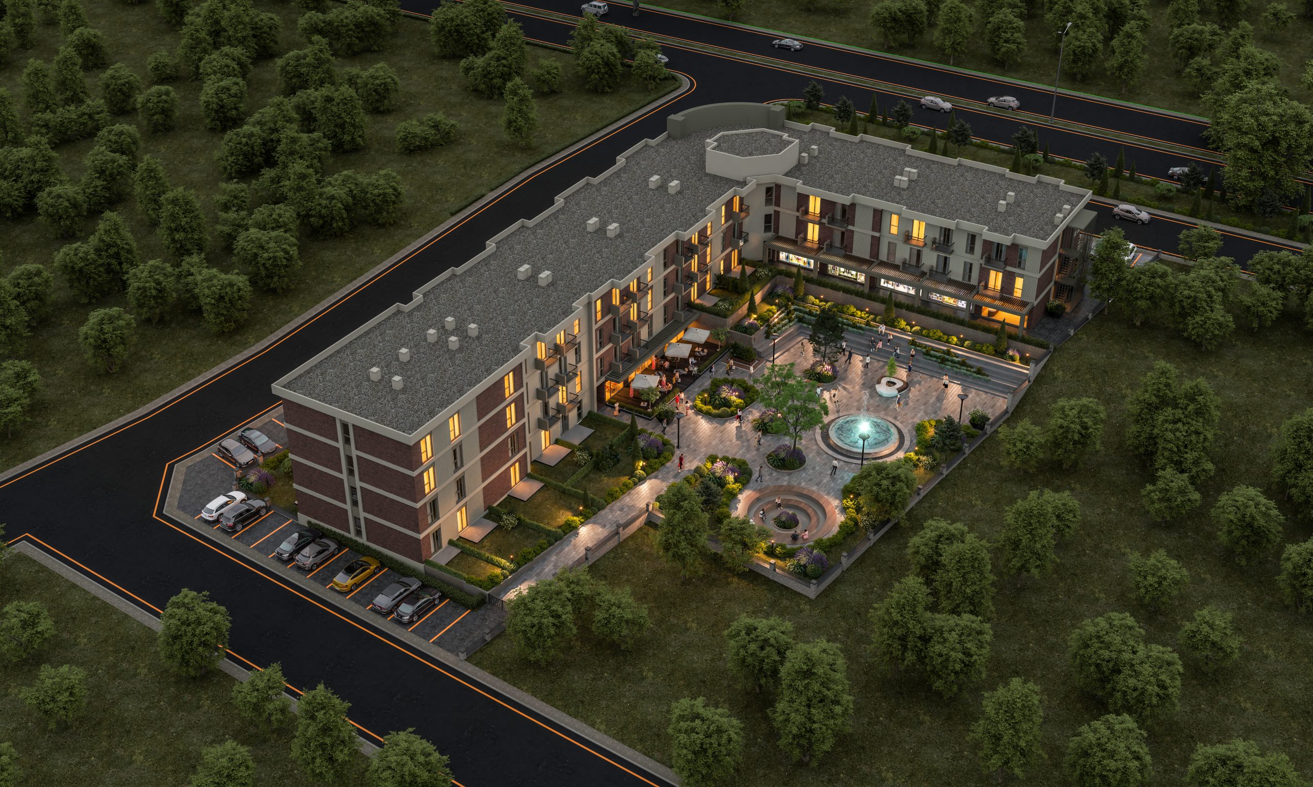 91 Daire ve 5 adet dükkandan oluşan bu projede, 1+1 ve 1+0 Ful Eşyalı Konseptli daireler